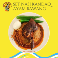 Set Nasi Kandar Melayu - Nasi Putih, Ayam Bawang, Telur Rebus, Bendi dan Teh Ais Malayleh. Kuah Campur. Memang Surrr!